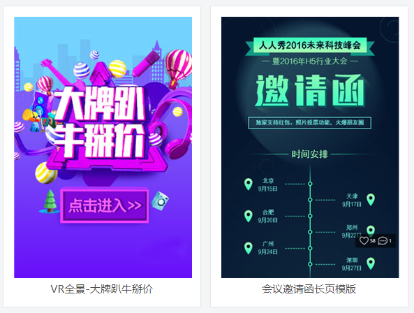 人人秀定位傻瓜几操作体验,除了能够制作简单的翻页H5,还支持各种互动插件,比如照片投票、游戏、微信红包、抽奖、VR全景、答题等功能,功能十分强大。 人人秀(原名we+) www.rrxiu.net 由合肥星爵互动信息科技有限公司打造,致力于移动互联网时代新媒体营销。是H5行业的ling航者。 2014年8月,星爵互动信息技术有限公司成立,截止到2016年11月,人人秀拥有300w企业用户,包括阿里巴巴、腾讯、滴滴出行、爱奇艺、华谊、光线、w达等。 在模板数量和互动功能上,人人秀全行业第一。 5000个模板,每周更新100个; 全行业首发的互动功能有:抽奖红包、口令红包、照片投票、转盘抽奖、测试问答、表单等。